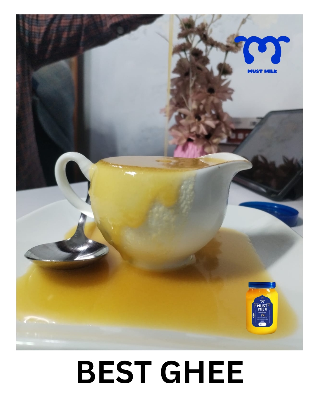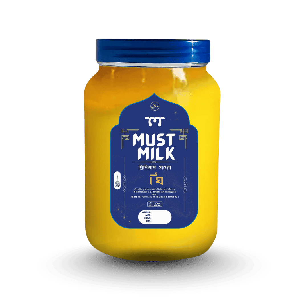Must Milk শুধুমাত্র ঘি নয় – এটি খাঁটি দুধের আসল স্বাদ ও পুষ্টির প্রতিশ্রুতি। আমরা ঘি তৈরি করি ঐতিহ্যবাহী পদ্ধতিতে, যত্ন ও সততার সাথে, যাতে প্রতিটি চামচে আপনি পান সম্পূর্ণ বিশুদ্ধতা।